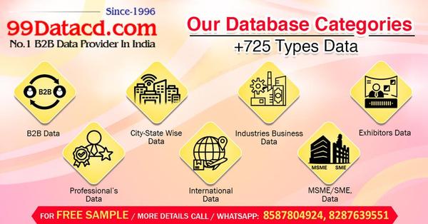 Since 1996, 99 Datacd has been serving the market. With our dedication, we have earned the position of being the most reputed and exclusive database supplier. We are a market pioneer in providing the B2B companies list in India. We understand that business-to-business data is the foundation that helps in business expansion, and thus, we have years of expertise in offering this data.Do you want to generate potential leads for your business? If yes, buy the verified list of B2B companies in India...